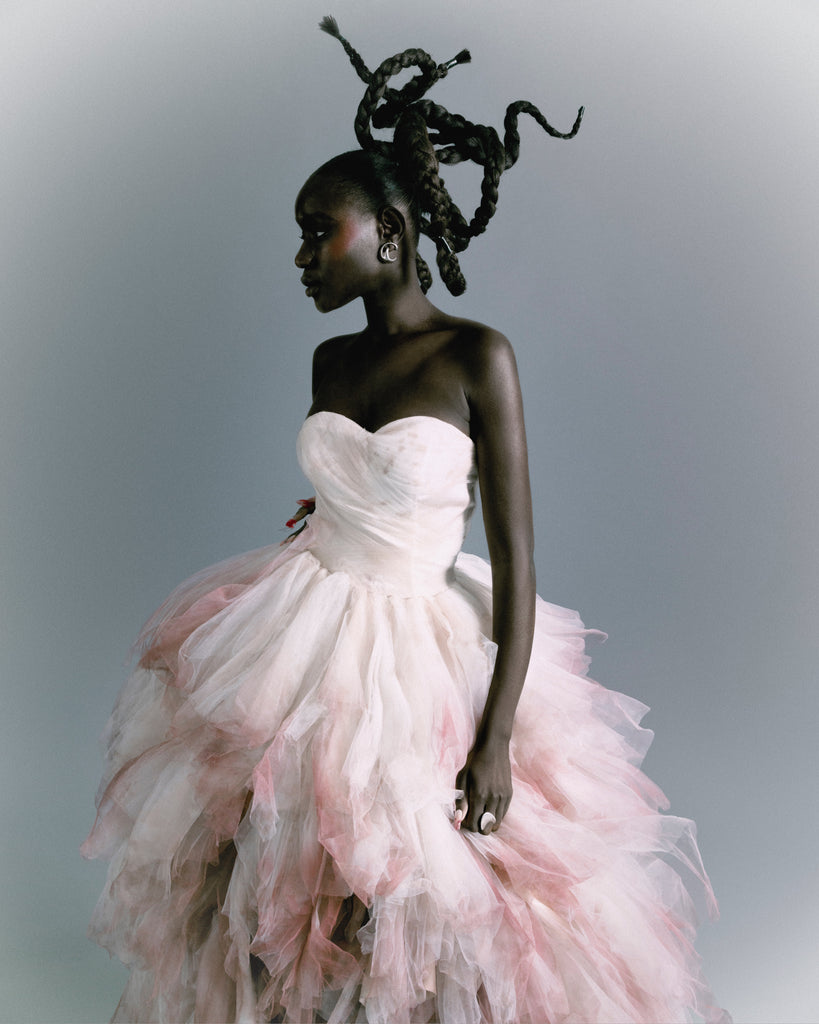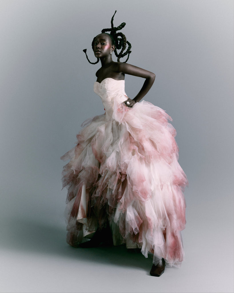 layers of weightless tulle cascade in a soft blush that deepens into a rich moody gradient
